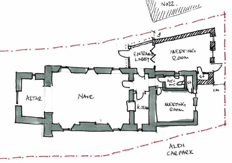 After the successful refurbishment of the chapel in 2017 the church had become a busy community space open daily for a drop in coffee club and other weekly activities as well as the Sunday morning church gatherings. With just the one small meeting room more space was already needed to facilitate a wider variety of uses such as mixed age group youth work.