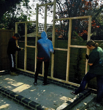 A self build project in my garden to accommodate the Starfish Puppet Team, with room for storage, making puppets and props and recording performances. The concrete base and brick plinth were installed by a local builder and we also used a local electrician for the electrical work, we built the rest ourselves with help from friends and family.